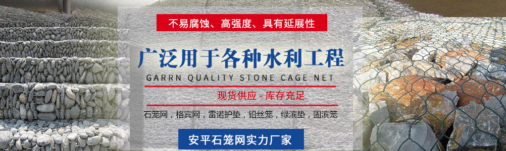 本公司主要生產:石籠網格賓網、重型六角網、鍍高爾凡格賓擋墻、雷諾護墊綠濱墊、固濱籠、耐特籠、鉛絲石籠、格賓石籠、電焊石籠網、鍍鋅石籠網、河道石籠網、包塑石籠網、勾花網、高爾凡石籠網、三擰石籠網、五擰石籠網等,可用于保護和支持河道、海堤、山坡、路橋、水庫及其他土木工程, 是防洪固堤工程的上好材料。以可靠的質量,滿意的售后服務深受新老客戶的好評。
